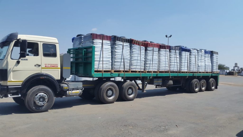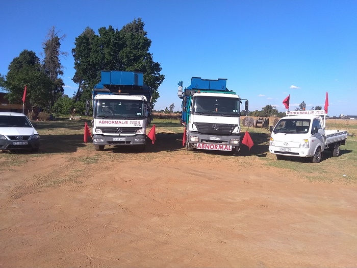 Eight and twelve ton Flatbed Mercedes trucks loaded abnormal and ready for the trip.