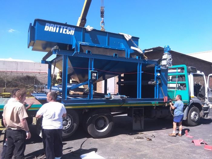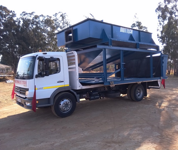 Loading screen manufactured by Brittech on a 12 ton flatbed Mercedes Axor 2528 truck.