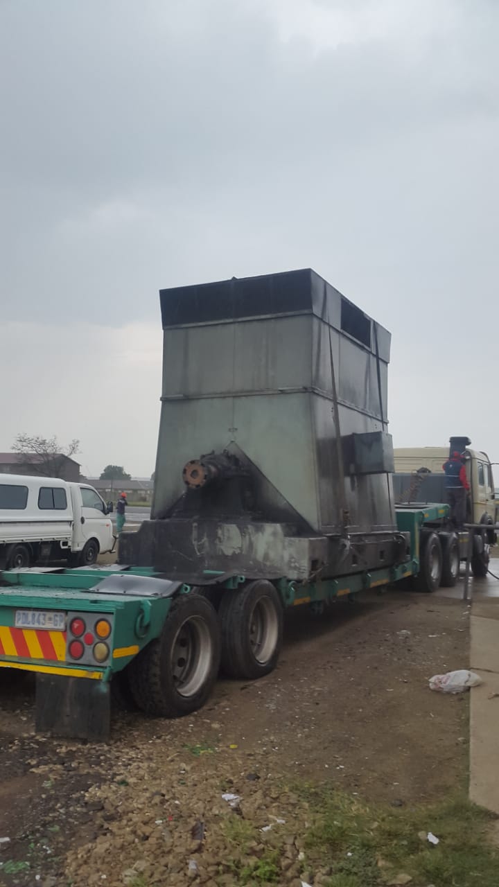 Twenty two ton motor loaded on flatbed Kriel Power Station